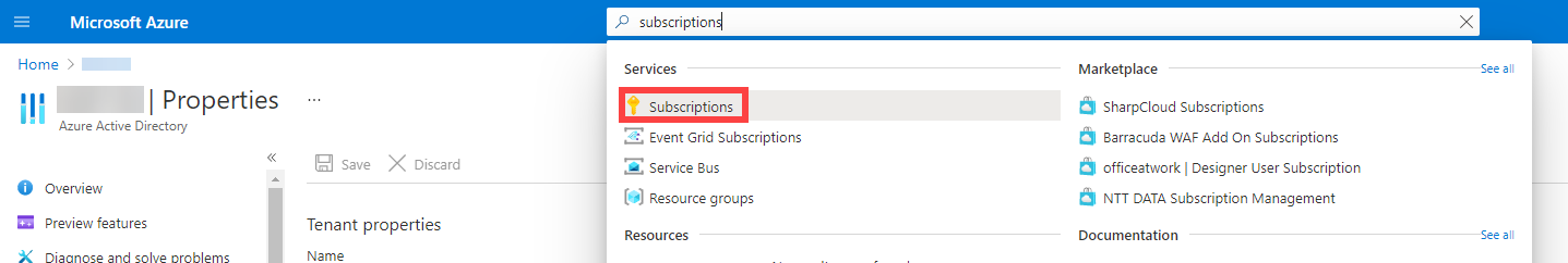 - Navigate to Subscriptions -> <your_subscription>