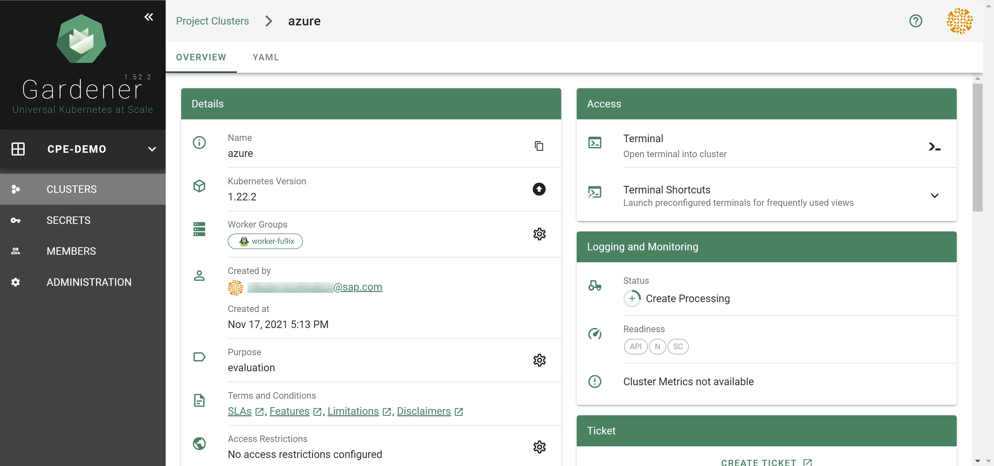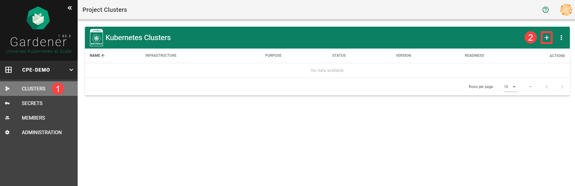 Go to the Gardener dashboard and create a Project.