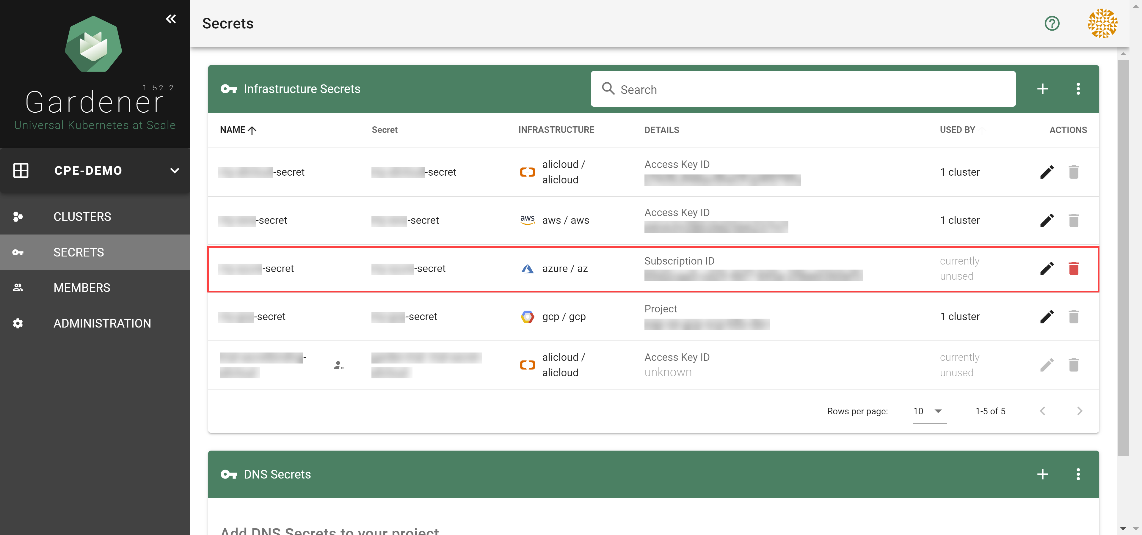- Choose the secret you created before in the Infrastructure Details tab.